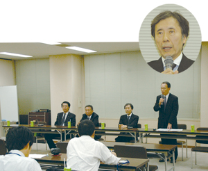 大久保満男会長(円内)は,三師会でレセプトオンライン化撤廃を求める共同声明を提出したことについて,ねばり強くやっていきたいとの意気込みを述べた. |