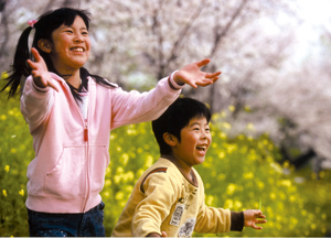 「1歳4カ月の時の娘の写真です.大好きなとうたんと,荒川にお散歩に行って,大喜びの写真です」 |